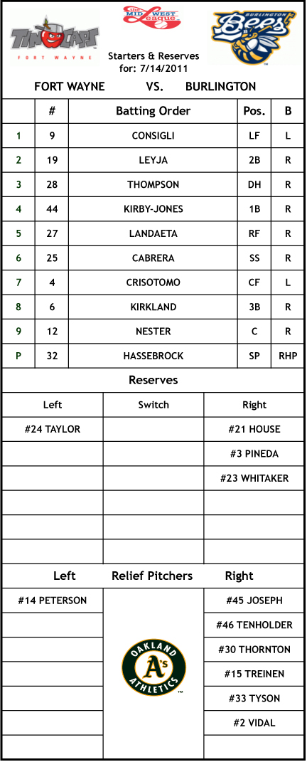 The Bees have an overall record of 28-17 this season in home games. Both the TinCaps and the Bees left seven runners on base last night. The Bees went 0-for-3 at the dish, while Fort Wayne went 1-for-10 with runners in scoring position in last night’s game. Burlington has a record of 19-16 in one-run games. The Bees are 2-27 overall this season when trailing after eight innings. The Bees have a record of 2-8 in their last 10 games.