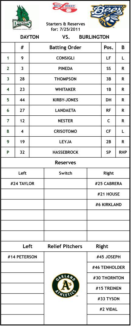 After a rain delay of just over three hours, the Burlington Bees played game of their two-game series last night in Dayton. It was a long night at the ballpark with the Bees getting on the bus shortly after 1:00 Sunday at the team hotel in advance of a 4:00 local start. Around 4:00 yesterday with both pitchers warming up in the bullpen, home plate umpire Alex Ransom called for the grounds crew to put the tarp on the field. After waiting patiently for three hours, the Bees and Dragons started their game at 7:01 Eastern Daylight Time last night. Two hours and 45 minutes later the Bees lost 7-1 to the Dragons.