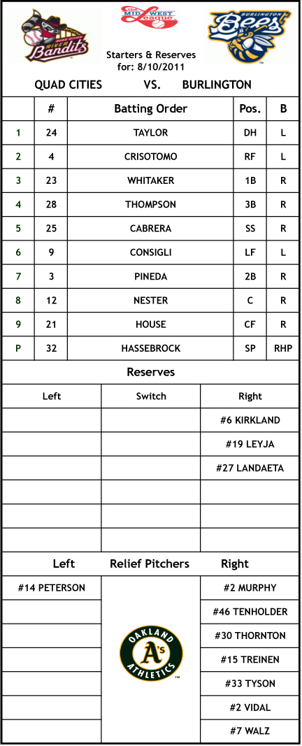 Last night the Bees fought back from a 3-0 deficit and scored two runs in the fourth inning on a two-run home run by 3B Tony Thompson. The Bees tied the game at 3 in the fifth inning on an RBI single by RF Jose Crisotomo. After the LumberKings pushed across a run in the sixth inning, the Bees tied the game on an opposite-field home run by Josh Whitaker. Thompson and Whitaker have combined for 29 of the 74 home runs hit by the Bees in 2011.
