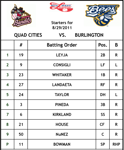 Josh Whitaker continued his amazing 2011 season by becoming the lone Bee selected as a 2011 Midwest League Post Season All-Star. A 25th round pick of the Athletics in 2010 that didn’t even break camp with the Bees out of spring training, Whitaker is currently leading the Midwest League with a .332 batting average. He’s hit for power, adding 17 home runs and 68 RBIs in his first full season out of Kennesaw State University.