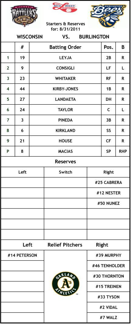 With the final home stand of the season beginning tonight, the Bees have moved around their starting rotation. RHP Jose Macias will get the start for Burlington tonight after his start was rained out in Quad Cities on Tuesday. The Bees will be sending RHP Jonathan Joseph to the hill on Thursday and RHP Blake Hassebrock will get the start on Friday. RHP Josh Bowman will take the hill for Burlington on Saturday and RHP Nate Long pitches on Sunday.